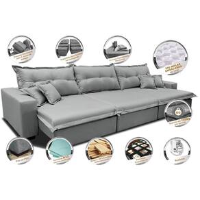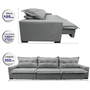 Sofá Retrátil e Reclinável 3,52m com Molas Ensacadas Cama inBox Prime Tecido Linho Cinza Claro