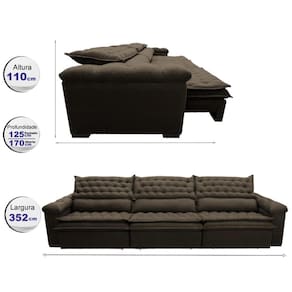 Sofá Retrátil e Reclinável 3,52m Molas Ensacadas Cama inBox Botonê. Espuma Viscoelástico - Marrom
