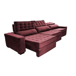 Sofá Retrátil E Reclinável 3,55m Cama Inbox Big Star Com Softgel D40 Velupluma Vinho
