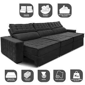 O Sofá Retrátil e Reclinável Big Star da linha BIG é um modelo exclusivo que oferece encostos mega gigantes e assentos maiores em comparação com outros do mercado. Ele foi criado para proporcionar charme, elegância e um conforto maravilhoso à sua sala. Sua estrutura interna resistente oferece a estabilidade necessária para este tipo de móvel, enquanto o enchimento em espuma SoftGel D40, Dupla Camada de Manta Siliconada e Percintas Extra Suport dão o suporte necessário para o conforto.Com este sofá, você pode maratonar séries ou descansar nos finais de semana com as pessoas que ama. Sinta-se como se estivesse em um colchão na sua própria sala com o Sofá Retrátil e Reclinável Big Star!