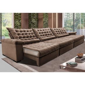 Sofá Retrátil E Reclinável 3,55m Molas Ensacadas Cama Inbox Big Space Com Bordado 3d Velusoft Castor