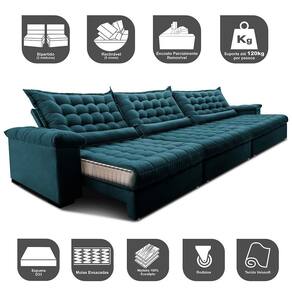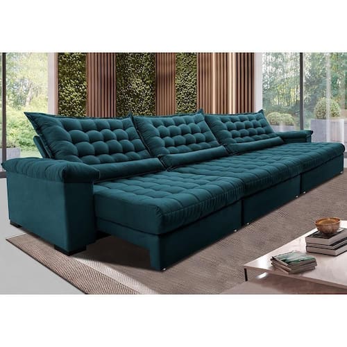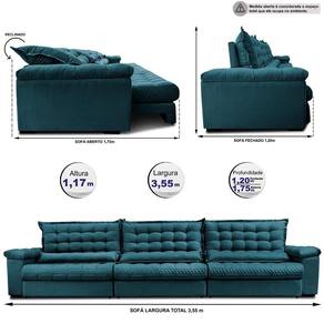 Sofá Retrátil E Reclinável 3,55m Molas Ensacadas Cama Inbox Big Space Com Bordado 3d Velusoft Petróleo
