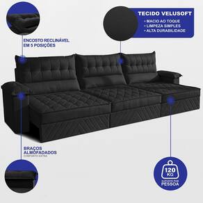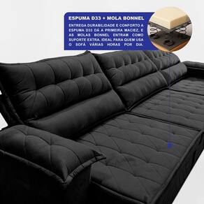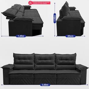 Sofá Retrátil e Reclinável 3,60m com Molas e Espuma D33 Thunder Velusoft Cama inBox