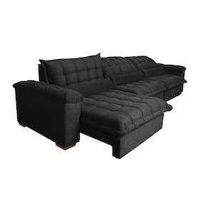 Sofá Retrátil E Reclinável 3,82m Com Molas Ensacadas Cama Inbox Aconchego Tecido Velusoft Preto