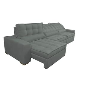 Sofá Retrátil E Reclinável 3,82m Com Molas Ensacadas Cama Inbox Gold Tecido Suede Velusoft Cinza