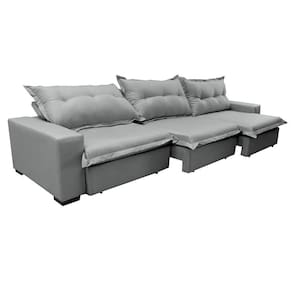 Sofá Retrátil E Reclinável 3,82m Com Molas Ensacadas Cama Inbox Prime Tecido Linho Cinza Claro