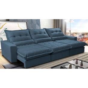 Sofá Retrátil E Reclinável 3,82m Com Molas Ensacadas Cama Inbox Soft Tecido Suede Velusoft Azul