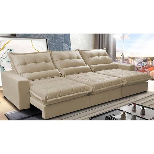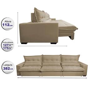 Sofá Retrátil e Reclinável 3,82m com Molas Ensacadas Cama Inbox Soft Tecido Suede Velusoft Bege