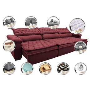 ESPUMA VISCOELÁSTICA: O bordado do sofá é produzido com uma espuma de poliuretano especialmente desenvolvida pela NASA chamada de espuma viscoelástica, que tem como função se moldar ao formato do corpo para reduzir os pontos de pressão em certas áreas do corpo. Isso possibilita que o corpo tenha uma sustentação uniforme sem fazer com que o sofá perca a maciez e seu conforto. Quem nunca sonhou em ter aquele sofá de novela na sala? Com este modelo você realiza seu sonho!