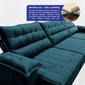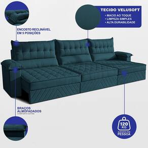 Sofá Retrátil e Reclinável 3,90m com Molas e Espuma D33 Thunder Velusoft Cama inBox