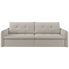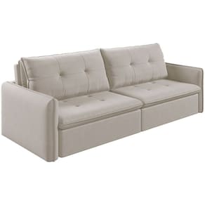 Produto feito com madeira de reflorestamento e revestido com Linho 100% poliéster. No assento, além da espuma D28 temos também manta de fibra de silicone. O encosto possui enchimento de fibra de silicone. Possui pés de madeira maciça. Produto Montado: Sim Acompanha Almofadas extras: Não Almofada do assento: Fixa Almofada do encosto: Removível Altura do assento até o chão: 46.0000 Altura do Encosto: 51 cm Ambiente Principal: Sala de Estar codigo_ean: 7900288221469 Complexidade da Montagem: Baixa: pode ser montado por uma pessoa sozinha Cor: Cru Cor do Produto: Cru Estilo de Braço: Braços Redondos Informações Complementares: Pillow nos assentos com 16 cm de Espuma Contínua S/A D28 Supersoft; Assentos retráteis com mecanismo metálico + molas de aço; Encostos reclináveis em 3 posições diferentes + almofadas soltas com enchimento de fibra de silicone; Costura pespontada com puxõ Itens Inclusos: 1 Sofá e Kit Ferragens Linha ou Coleção: Braga Marca: Estofart Material dos Pés: Madeira Montagem Flex: Não Necessita Montagem: Sim Origem do Produto: Nacional Peso: 91 kg Pet Friendly: Não Possui Percintas Elásticas: Sim Possui Pés: 08 Possui Rodízio: Sim Profundidade Quando Estendido: 150 cm Profundidade quando extendido: 150.0000 Recomendações de Uso, Manutenção e Limpeza: - Não expor ao sol ou fonte de calor; Não utilizar produtos de limpeza como detergente, álcool, solventes, ou produtos químicos; Para a limpeza, utilizar pano umedecido em água, sabão neutro e escova de cerdas macias, deixando secar a sombra. Em caso de excesso de poeira, usar aspirador de pó; Não provocar tensões desproporcionais no assento do sofá, provocadas pro quedas ou pulos; Evitar contatos com animais; Preservar o produto de objetos aquecidos ou pontiagudos; Mantê-lo em local arejado; Não arrastar o sofá pelos braços; Transportar com o máximo de cautela. Rodízio com Trava: Não Sistema de Montagem: Parafusação dos pés na base do sofá e união entre os módulos por engate metálico Suporta Até (kg): 100 kg Tecido Predominante: Linho Tipo de Encosto: Regulável Tipo de Mola: Molas Espirais Tipo de Sofá: Sofá Comum Marca: Não Informado