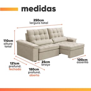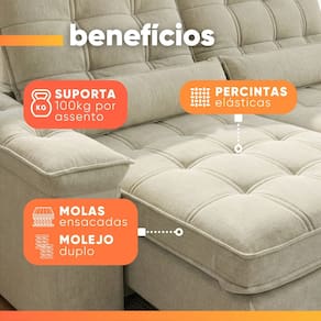 DIFERENCIAL: Modelo retrátil e reclinável ideal para quem busca praticidade e conforto. Assento com molas ensacadas. Acompanha 2 almofadas.