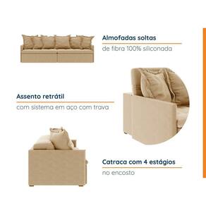 Sofá Retrátil e Reclinável 4 Lugares 280cm Dália Cabecasa Madeiramadeira Palha - Bege