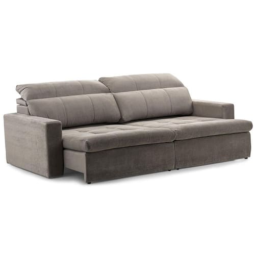 Tipo de Encosto: Encosto com mecanismo reclinável e almofadas fixas e prrenchidas com espuma de média densidade