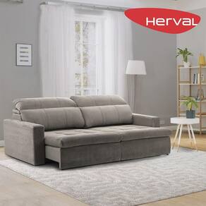 Sofá Retrátil e Reclinável 4 Lugares Herval Vancouver Camurça Cinza com USB, 260 cm