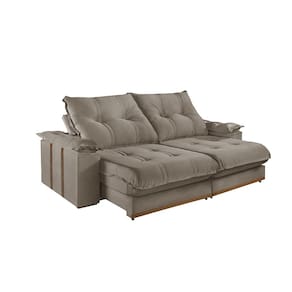 Caracteristicas: Sofa Marca: Martins Estofados Modelo: M-193 Tipo: Retratil e reclinavel Tipo de Tecido: Veludo Assento: Espuma D-28 Soft com molas ensacadas e pillow de 30 cm Encosto: Reclinavel com fibra de silicone -fixo- Bracos: 25 cm com espuma D-28 firme e pillow de fibra de silicone Sustentacao: Persintas elasticas Revestimento: Espuma D-28 Soft Estrutura: Madeira de eucalipto tratada, aparelhada Pes: 4 pes em madeira macica Pinus/Sinamomo -2 por modulo- Rodizios: 4 rodizios de silicone incolor -2 por modulo- Mecanismo retratil: Trilho de tubo pintado Catraca: Com 5 estagios de inclinacao Bipartido -Facilita transporte e montagem-