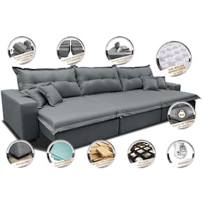 *Assentos: Feitos com espuma D33, Fibra Siliconada, Percintas Pneumáticas e Madeira de Eucalipto, sua estrutura foi desenvolvida para dar mais qualidade e praticidade ao seu dia a dia. Seus assentos são retráteis, dando mais modernidade a sua sala. Além disso, para dar maior conforto e sustentação, na parte do Pillow foram utilizadas 546 Molas Ensacadas de Molejo Duplo, uma excelente opção para passar horas deitado/sentado sem dores e/ou desconfortos.