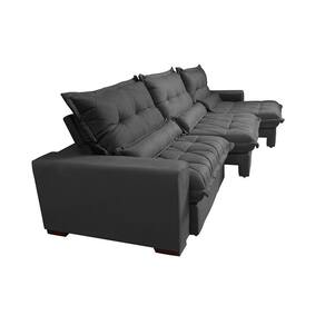 Sofá Retrátil E Reclinável 4,12m Com Molas Ensacadas Cama Inbox Soft Tecido Suede Velusoft Preto