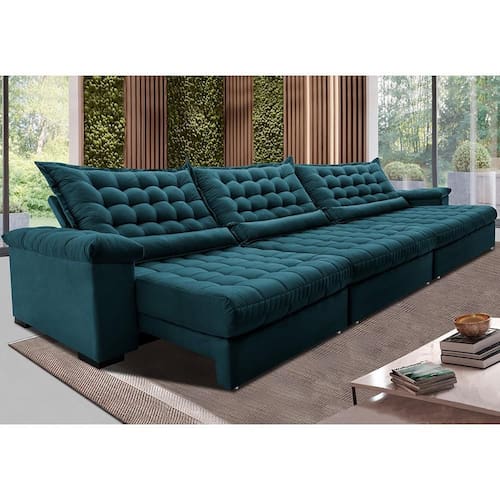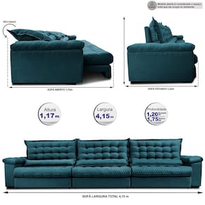 O Sofá Retrátil e Reclinável Big Space, da Linha BIG, oferece charme, conforto e imponência. Possui encostos mega gigantes e assentos maiores que os modelos comuns. Estrutura em madeira maciça 100% eucalipto, assentos com espuma D33, molas ensacadas, molas bonnel, fibra siliconada e percintas Extra Suport. Encostos reclináveis em 5 níveis, almofadas parcialmente removíveis com 80% fibra siliconada e 20% flocos de espuma. Braços com 25cm de largura. Tecido suede Velusoft. Medidas: Altura 1,17m. Profundidade: 1,20m (fechado), 1,75m (aberto). Largura 4,15m. Bipartido (2 módulos). Suporta até 120kg por pessoa. Fácil montagem, sem necessidade de montador. Garantia de 6 meses. Produto artesanal, com possíveis variações nas medidas e tonalidades. Entrega até a porta. Transportadoras não sobem escadas ou elevadores.