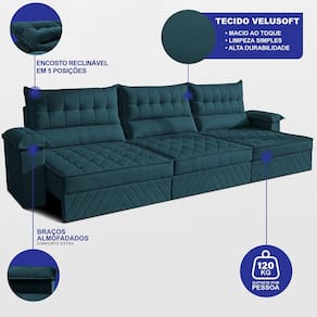 - Chega pronto para usar: O Sofá já chega montado, basta apenas conectar os seus três módulos para garantir maior estabilidade;
