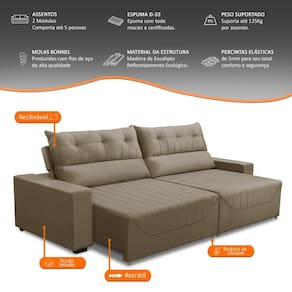 Sofá Retrátil e Reclinável 5 Lugares 3,00m Antonella Veludo Capuccino Adonai Estofados - Marrom