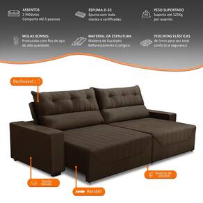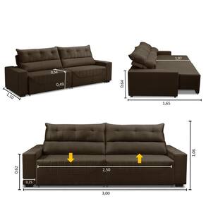 Sofá Retrátil e Reclinável 5 Lugares 3,00m Antonella Veludo Marrom Adonai Estofados