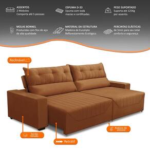 Encosto:Composto com enchimento de 80% fibra e 20% flocos que proporcionam maciez e conforto, além de possuir um kit de catracas com 3 estágios que te permite posicionar o encosto da maneira que mais lhe agrada.