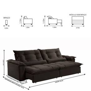 Dimensões: Altura: 112 cm Largura: 180 cm Profundidade Fechado: 120 cm Profundidade Aberto: 180 cm -com encosto reclinado- Peso: 85 kg