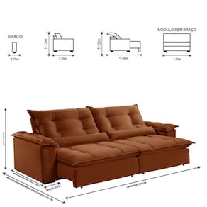 Características: Marca: TXR Modelo: Apolo Tipo: Sofá 4 lugares Retrátil e Reclinável Estrutura: Madeira de origem certificada, Eucalipto Revestimento: Tecido Veludo Pés: Madeira Reflorestada Assento: Retrátil de duplo molejo - mola Bonnel + percinta tipo Italiana + Pillow de molas ensacadas com espuma D28 Encosto: Reclinável em 5 estágios, 100 fibra de silicone Braços: 25 cm com pillow 100 fibra de silicone Rineira: Almofada de fibra de silicone com zíper Retrátil e Reclinável: Com mecanismo em aço