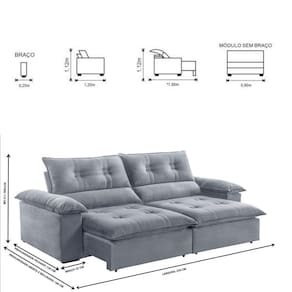 Dimensões: Altura: 112 cm Largura: 230 cm Profundidade Fechado: 120 cm Profundidade Aberto: 180 cm -com encosto reclinado- Peso: 97 kg