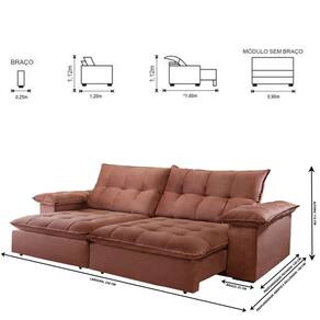Dimensões: Altura: 112 cm Largura: 230 cm Profundidade Fechado: 120 cm Profundidade Aberto: 180 cm -com encosto reclinado- Peso: 97 kg