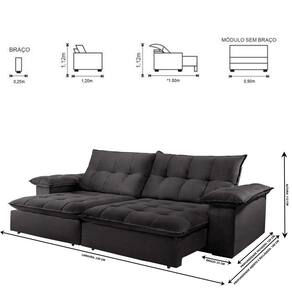Dimensões: Altura: 112 cm Largura: 230 cm Profundidade Fechado: 120 cm Profundidade Aberto: 180 cm -com encosto reclinado- Peso: 97 kg