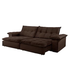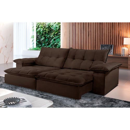 Características: Marca: TXR Modelo: Atlanta Tipo: Sofá 4 lugares Retrátil e Reclinável Estrutura: Madeira de origem certificada, Eucalipto Revestimento: Tecido Veludo Pés: Madeira Reflorestada Assento: Retrátil de duplo molejo - mola Bonnel + percinta tipo Italiana + Pillow de molas ensacadas com espuma D28 Encosto: Reclinável em 5 estágios, 100 fibra de silicone Braços: 25 cm com pillow 100 fibra de silicone Retrátil e Reclinável: Com mecanismo em aço