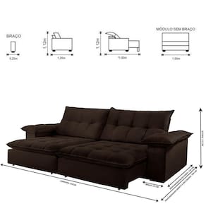 Dimensões: Altura: 112 cm Largura: 250 cm Profundidade Fechado: 120 cm Profundidade Aberto: 180 cm -com encosto reclinado- Peso: 102 kg