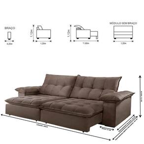 Dimensões: Altura: 112 cm Largura: 290 cm Profundidade Fechado: 120 cm Profundidade Aberto: 180 cm -com encosto reclinado- Peso: 126 kg