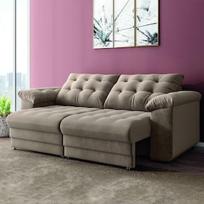 O Sofá Retrátil e Reclinável Coliseu 2,10m bipartido que facilita na hora da montagem, é a escolha perfeita para acomodar a família ou amigos, seu design sofisticado combina com qualquer ambiente. É produzido com materiais de ótima qualidade, revestido em tecido suede veludo de toque macio. O encosto é reclinável, e o assento é retrátil! Ele tem percintas elásticas que garantem apoio, elasticidade e conforto. Este modelo é ideal para que você possa aproveitar seus momentos de lazer e descanso.