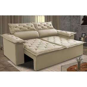Sofá Retrátil E Reclinável Cama Inbox Compact 1,50m Tecido Suede Velusoft Bege