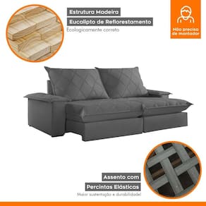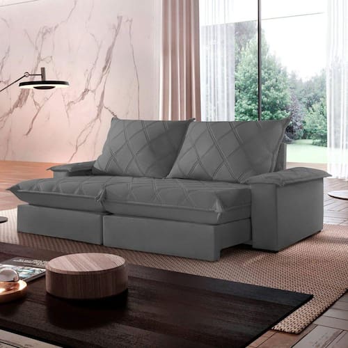 Sofá Retrátil e Reclinável com Catraca Blindada 220cm Merlot Jolie/Grafite - Cinza
