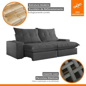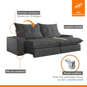 Sofá Retrátil e Reclinável com Catraca Blindada 230cm Porto Jolie/Grafite - Cinza