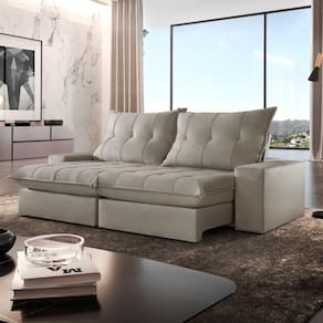 Experimente o máximo em conforto e estilo com nosso sofá retrátil e reclinável, o epítome do luxo moderno para sua sala de estar. Este sofá é mais do que um simples móvel; é um convite para o relaxamento supremo. Com seu design elegante e estofamento de alta qualidade, ele não só adiciona um toque de sofisticação ao seu espaço, mas também oferece a versatilidade de se ajustar às suas necessidades. Recline-se e relaxe após um longo dia de trabalho, ou estenda o sofá para receber seus convidados com conforto e hospitalidade. Produto Montado: Sim Acompanha Almofadas extras: Não Almofada do assento: Fixa Almofada do encosto: Removível Altura do assento até o chão: 50.0000 Altura do Encosto: 64 cm Altura dos Pés: 2,5 cm Ambiente Principal: Sala de Estar codigo_ean: 7909903647042 Complexidade da Montagem: Baixa: pode ser montado por uma pessoa sozinha Cor: New Kalliope/Bege Cor do Produto: New Kalliope/Bege Densidade do Assento: D-26 Enchimento do Assento: Espuma Enchimento do Encosto: Fibra Siliconada Firmeza do Assento: Firme Itens Inclusos: 1 Sofá e manual de instrução. Linha ou Coleção: Porto Manual de Montagem e Instalação: https://product-hub-prd.madeiramadeira.com.br/903957/documents/1ff71c58-b7b9-42e0-b297-def63da794fe19019211.pdf Material dos Pés: Madeira Montagem Flex: Não Necessita Montagem: Sim Peso: 110 kg Pet Friendly: Não Possui Baú: Não Possui Percintas Elásticas: Sim Possui Pés: 08 Possui Rodízio: Sim Profundidade Quando Estendido: 175 cm Recomendações de Uso, Manutenção e Limpeza: Para limpar, utilize pano seco ou papel absorvente. Não armazenar em local úmido. Não usar produtos químicos como detergente, cloro, alvejantes entre outros. Evitar exposição a luz solar direta por longos períodos. O consumidor perderá total garantia se for detectado dano no produto causadas por animais! Revestimento do Braço: Espuma , manta acrilica Rodízio com Trava: Não Sistema de Montagem: Encaixe. Suporta Até (kg): 120 kg Tecido Predominante: Veludo Tipo de Encosto: Regulável