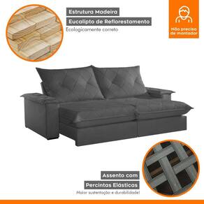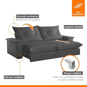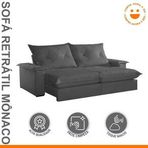 Sofá Retrátil e Reclinável com Catraca Blindada 280cm Mônaco Veludo Jolie/Grafite - Cinza