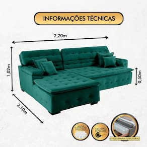 Sofá Retrátil e Reclinável Com Chaise Orlando 2.20x2.10m- Sofisticato