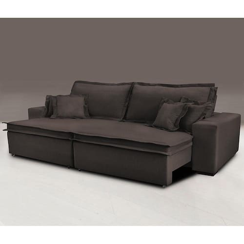 Sofa Retrátil E Reclinável Com Molas Cama Inbox Premium 2,72m Tecido Em Linho Marrom