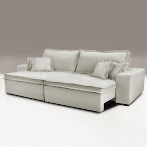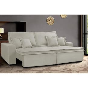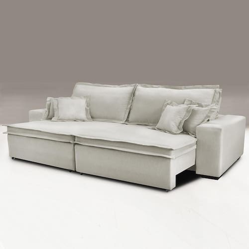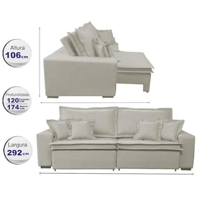 Sofa Retrátil e Reclinável com Molas Cama inBox Premium 2,92m tecido em linho Bege Claro
