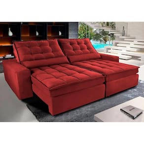 Sofá Retrátil E Reclinável Com Molas Ensacadas Cama Inbox Gold 2,72m Tecido Suede Velusoft Vermelho