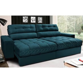 Sofá Retrátil E Reclinável Com Molas Ensacadas Cama Inbox Master 2,32m Tecido Velusoft Petróleo