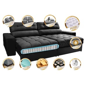 Sofá Retrátil e Reclinável com Molas Ensacadas Cama inBox Master 2,52m Tecido Suede Preto - Preto
