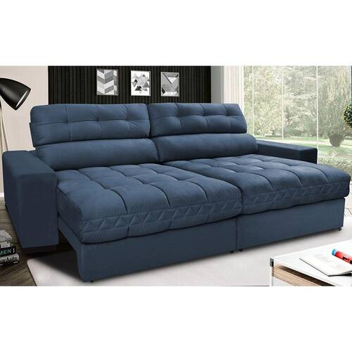 Características: -Encosto Reclinável com 5 posições, almofadas fixas compostas de 80% fibra siliconada e 20% flocos de espuma e percintas elásticas para maior conforto. -Assentos: Retráteis com espuma D33 envolvidas em ultra camada de fibra SILICONADA compactada, Molas ensacadas grandes, Molas Bonnel, percintas Pneumáticas com feltro para proteger do atrito com as molas. -Braços: Com 25cm de largura e com espuma D33. -Fixação: Grampos galvanizados -Estrutura de Madeira maciça 100% eucalipto de reflorestamento, produto ecologicamente correto. -Tecido suede com toque aveludado -Pés em PVC
