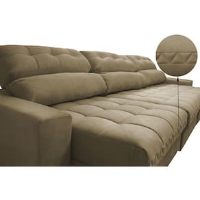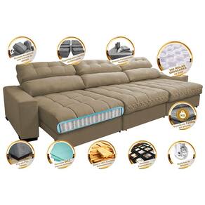 Sofá Retrátil e Reclinável com Molas Ensacadas Cama Inbox Master 3,52m Tecido Suede Bege