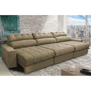 Sofá Retrátil E Reclinável Com Molas Ensacadas Cama Inbox Master 3,52m Tecido Suede Bege